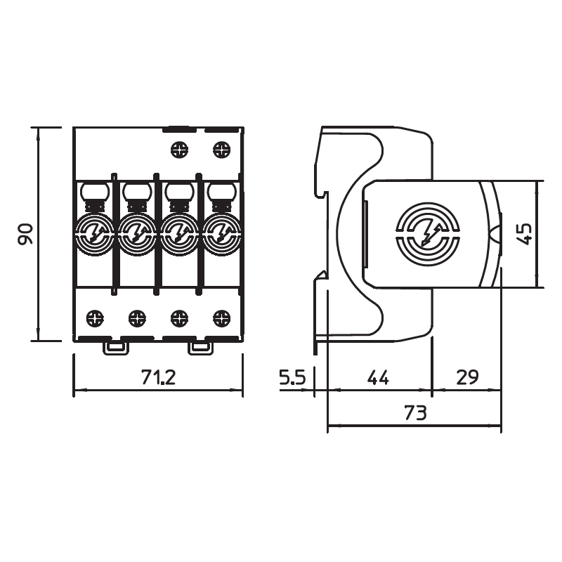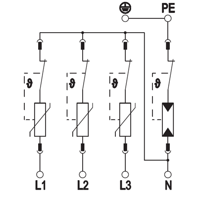 - دارای حفاظت جریانی تا 12.5kA با شکل موج 10/350μS در هر قطب