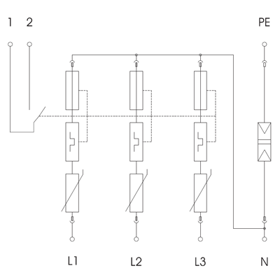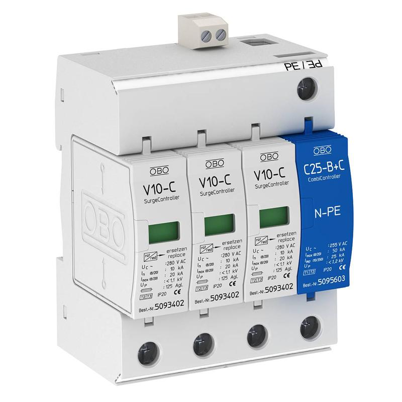 ارستر کلاس ترکیبی (C+D) نوع 3+2 مدل V10-C 3+NPE+FS با کد فنی 5094931 یکی از کامل ترین ارسترهای سه فاز چهارپل ساخت شرکت OBO می باشد.طبق استاندارد، فاصله نصب بین دو ارستر کلاس C و D نباید کمتر از 5 متر باشد. رعایت این فاصله، مشکلاتی را در امور تابلو سازی ایجاد می کند که برای رفع آن، از ارسترهای کلاس ترکیبی C+D استفاده می شود.سرج ارستر 5094931 از سری V10 با تحمل جریان سوییچینگ حداکثر 40KA از زون 1 تا زون 3 حفاظت را انجام می دهد.