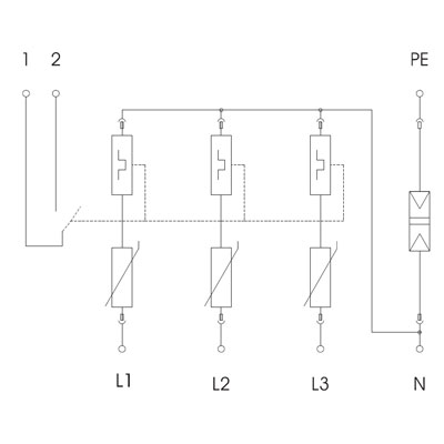 این سرج ارستر از سری V50 شرکت OBO با تحمل جریان صاعقه (10/350μS) مجموع 50 کیلوآمپر و برای هر پل 12.5 کیلو آمپر می باشد. سرج ارستر 593662 حفاظت در برابر اضافه جریان سوییچینگ (8/20μS) را نیز داراست و حداکثر تا 50 کیلوآمپر تحمل دارد.