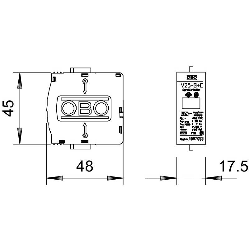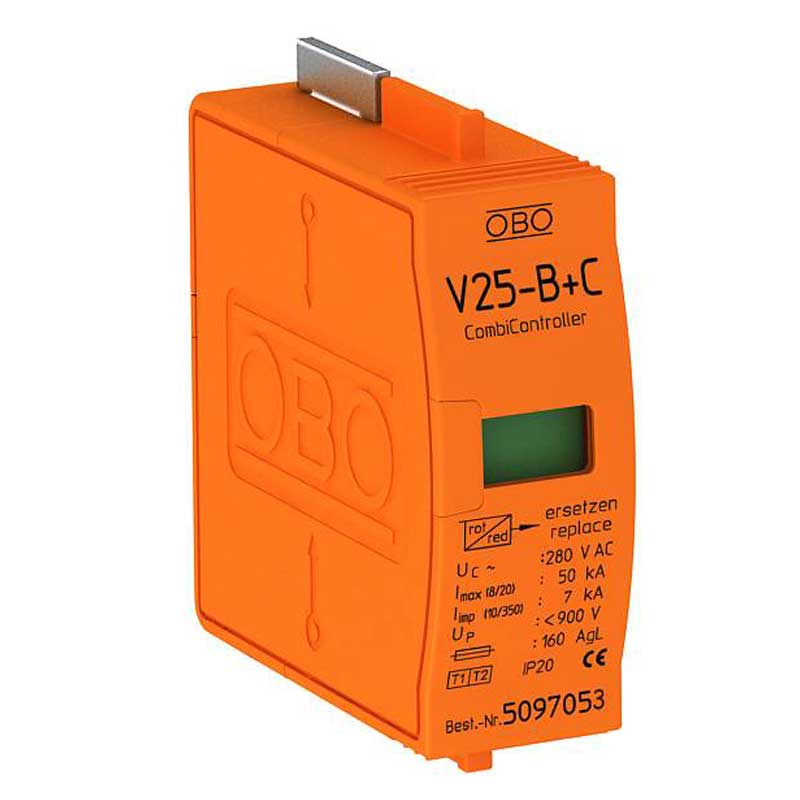 خشاب فاز یا ماژول فاز سرج ارستر کلاس B+C مدل V25-B+C 0-280 با کد فنی 5097053 در ارستر های تیپ قدیم سری V25 تک فاز و سه فاز بین فاز و ارت استفاده می شود. خشاب فاز 5097053 حفاظت در برابر اضافه جریان سوییچینگ (8/20μS) را حداکثر تا 50 کیلوآمپر و حفاظت در برابر جریان صاعقه (10/350μS) حداکثر تا 7 کیلوآمپر انجام می دهد.حداکثر ولتاژ خشاب فاز 5097053 برابر با 280 ولت با درجه حفاظتی IP20 می باشد.