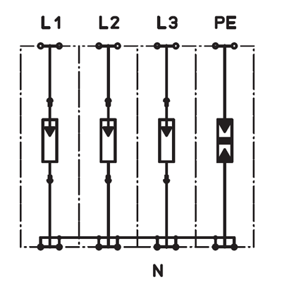- دارای حفاظت جریانی تا 50kA با شکل موج 10/350μS در هر قطب