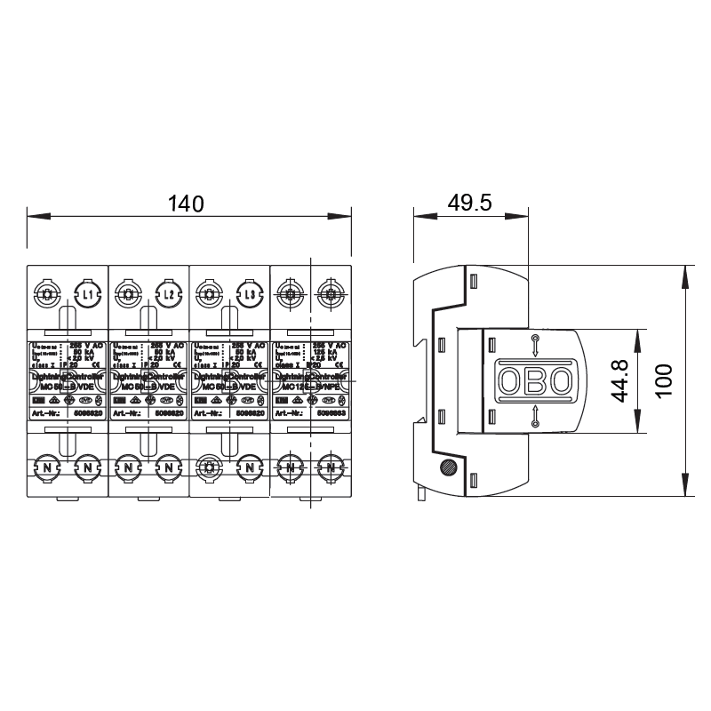 • جریان تخلیه نامی صاعقه(10/350): 50KA