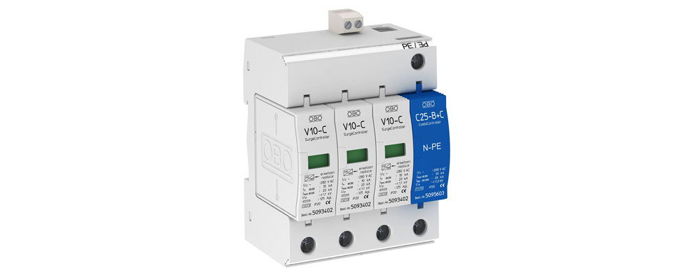 اتصال سرج ارستر کلاس C+D یا نوع2+3 بصورت موازی و ارتباط از طریق فیوز کاردی از نوع gL/gG انجام گیرد. حداکثر مقدار این فیوز توسط تولید کننده محصول بیان می شود.برای ارستر نوع 3+2 برند OBO این مقدار برابر با 125 آمپر می باشد.با به توصیه سازنده چنانچه سایز کلید یا فیوز بالادست ارستر از این مقدار کمتر باشد نیازی به نصب فیوز پشتیبان نمی باشد.