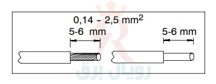 سطح مقطع سیم اتصال به ارستر کلاس D برای مدل مخصوص منابع تغذیه حداقل 0.14 و حداکثر 2.5 می باشد.